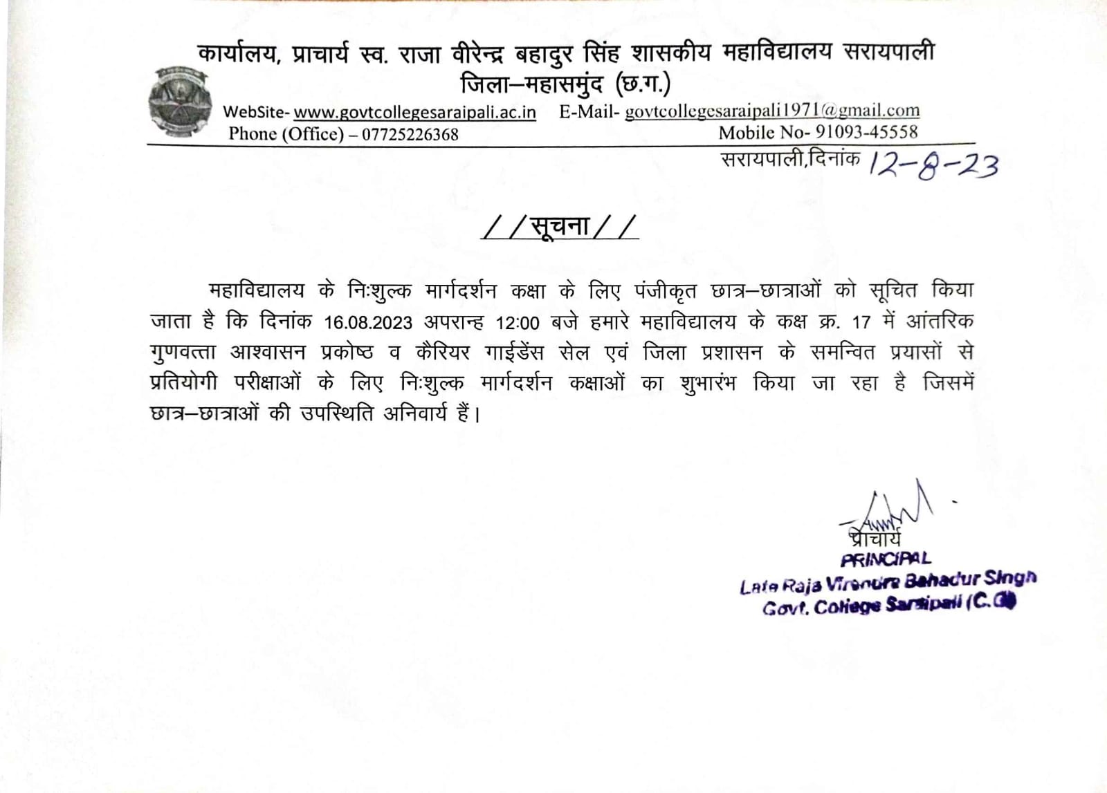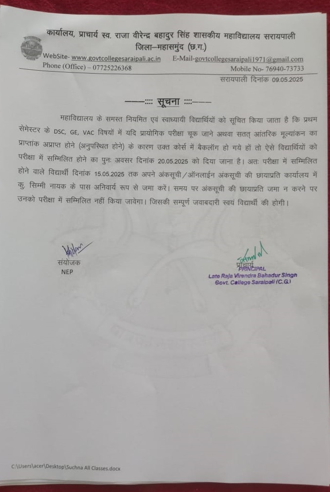 Lt. Raja Virendra Bahadur Singh Govt. College Saraipali